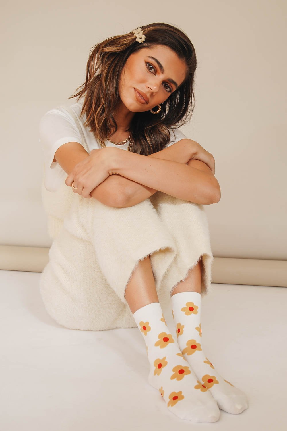 Our It's A Vibe Socks are so comfy & they look so cool worn on their own while you're lounging around or with your fave sneakers & a mini dress for a street style vibe. Also available in Pink, Mustard & Navy.