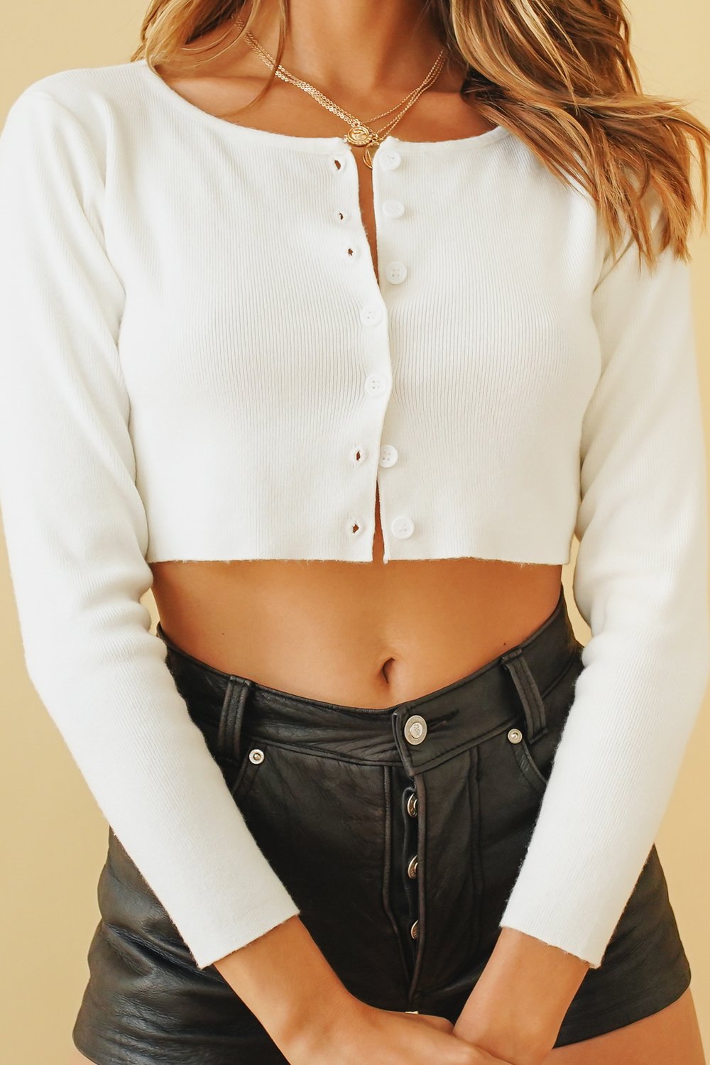 Downtown L.A. Our Sunday Society Knit Top is so cool styled with your fave vintage shorts, strappy black mules & gold hoops for an L.A street style vibe. Also available in Hot Pink, White & Sky.