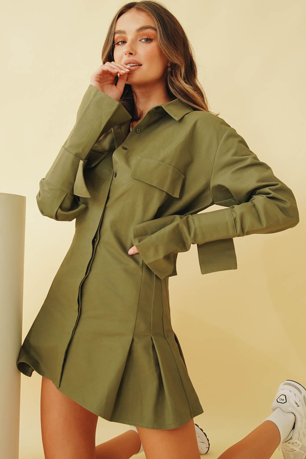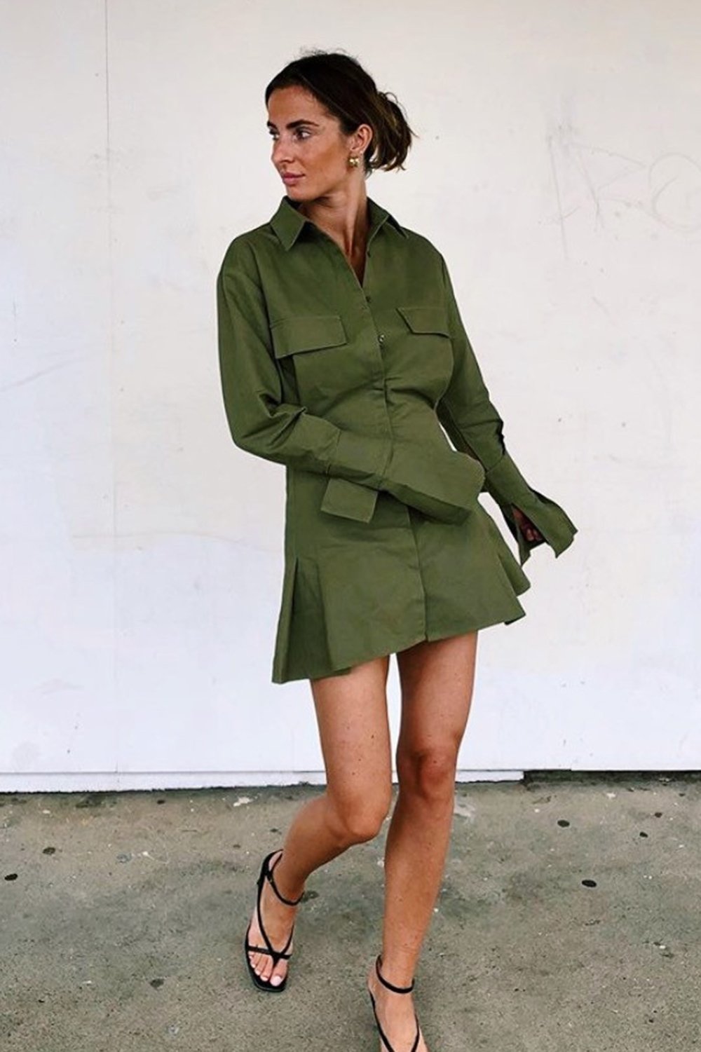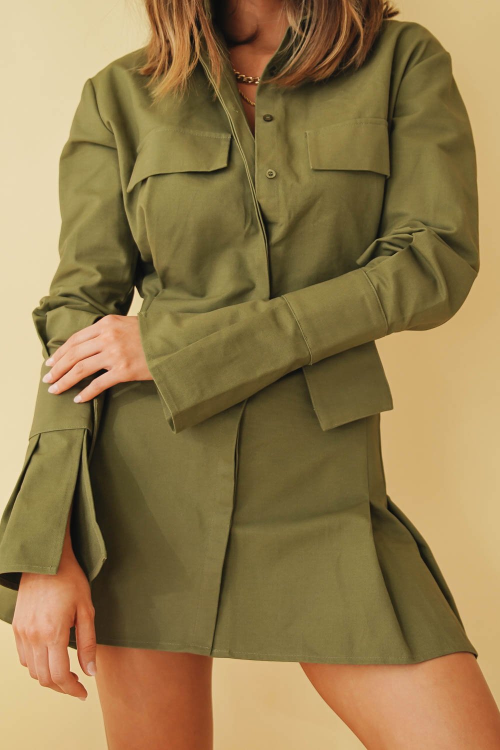 The Lookbook Button Front Mini Dress // Khaki