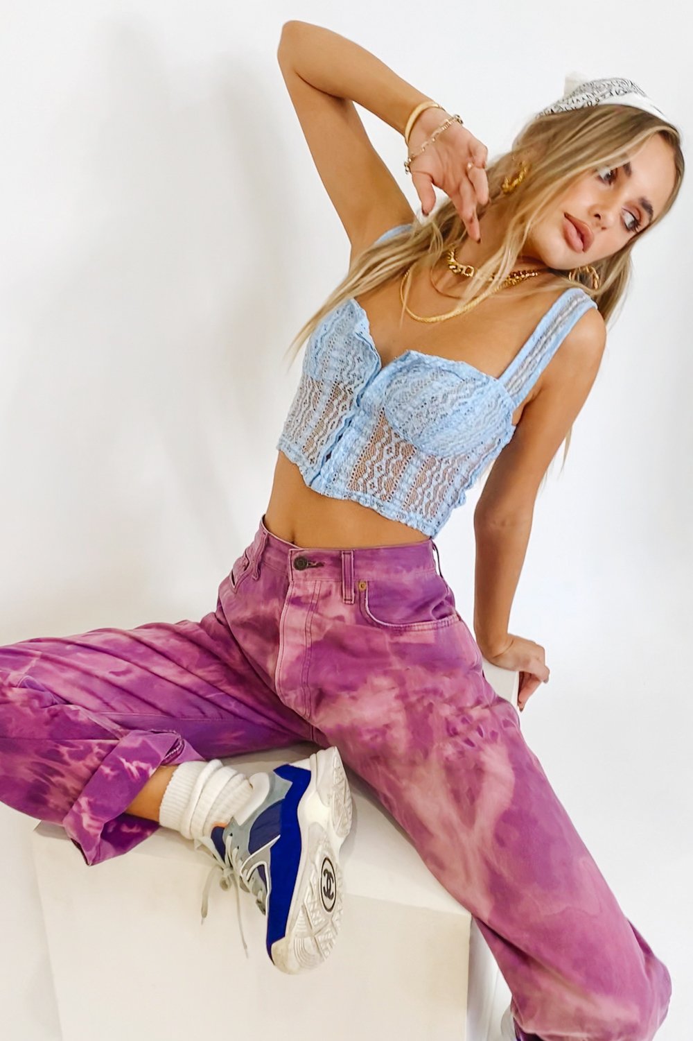 Feeling Femme... Style this VG Exclusive lace top with your fave vintage denim, pastel mules & layered gold accessories for a weekend spent with the girls! Also available in Lilac, Sage, Black, White & Pink.