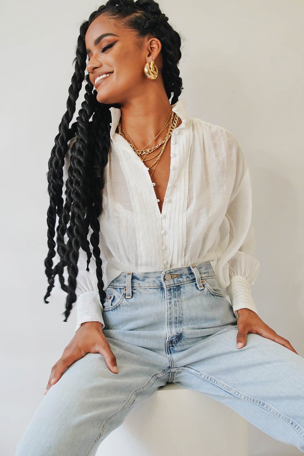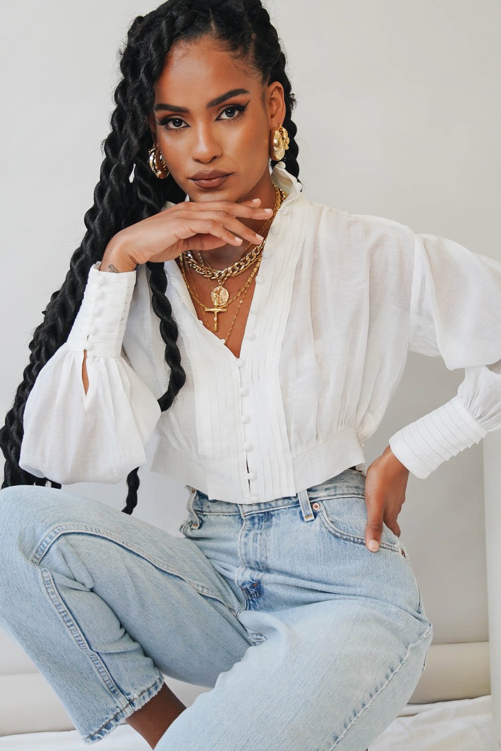 Turn heads in our VG Exclusive Summer Nights Top! This button front number is the perfect addition to your vacay wardrobe. Style with vintage Levi's & mules for balmy afternoon cocktails with the girls! Please note bralette worn underneath is not included.