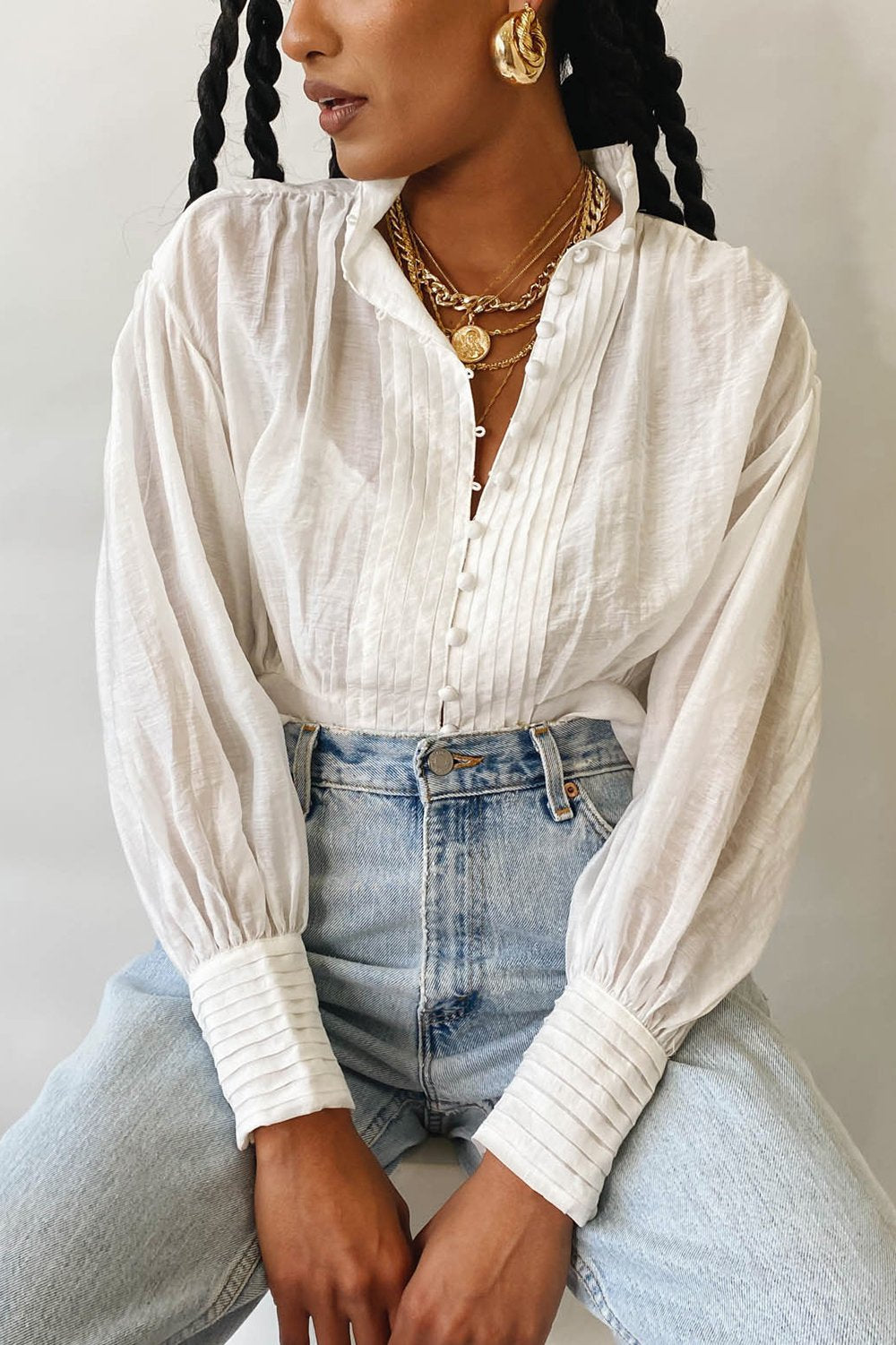 VG Summer Nights Button Front Top // White