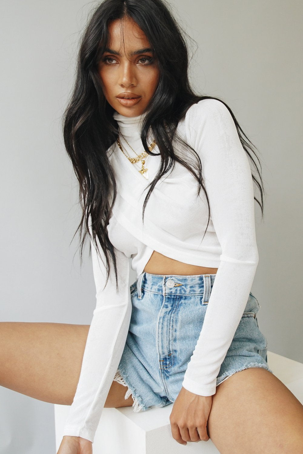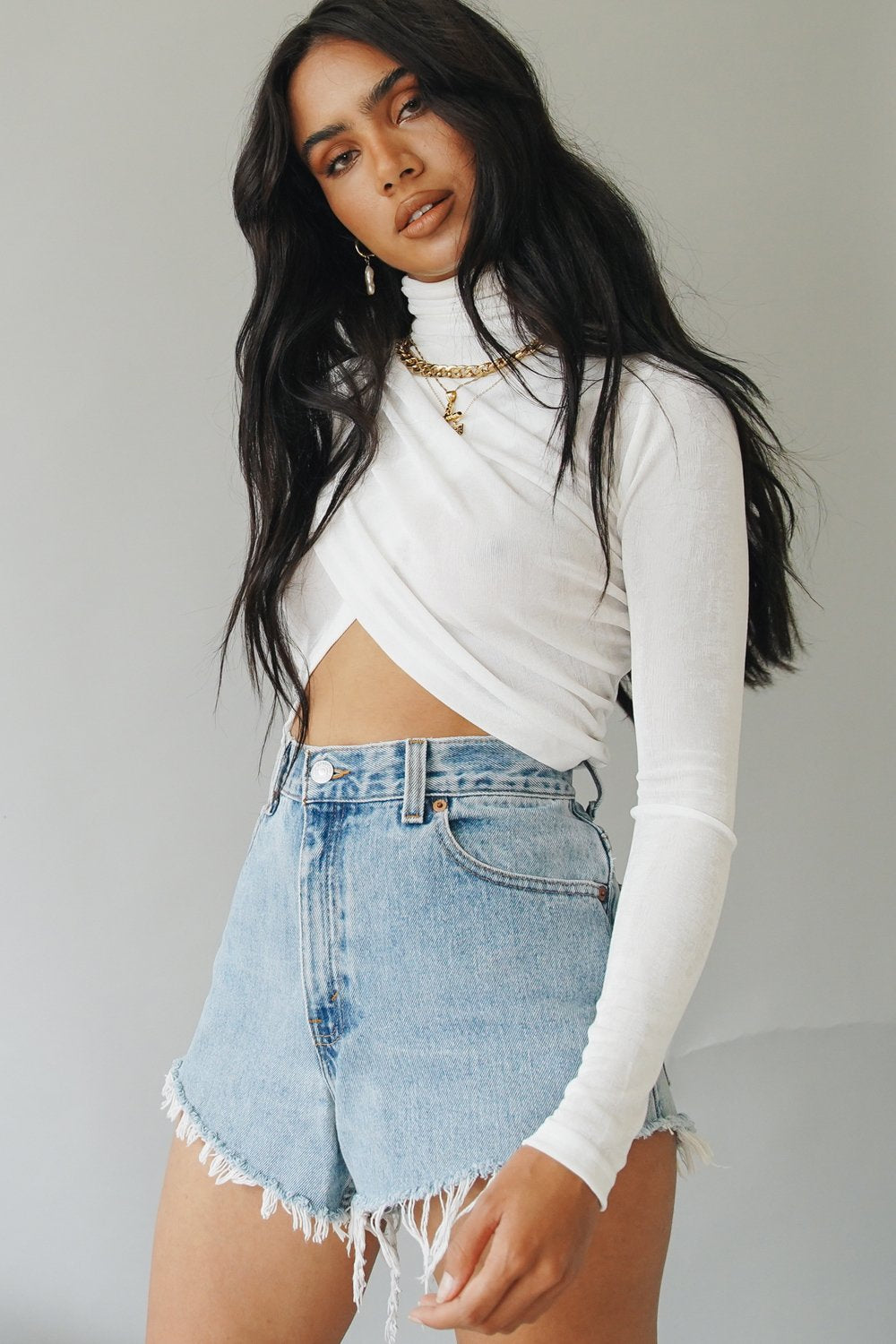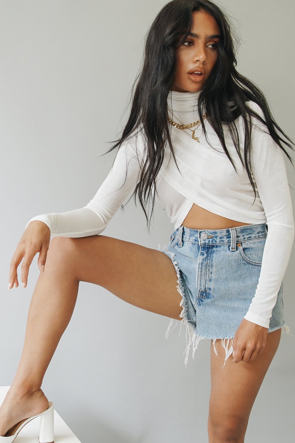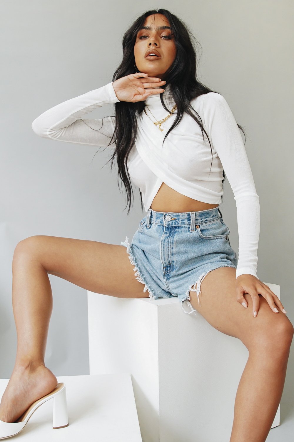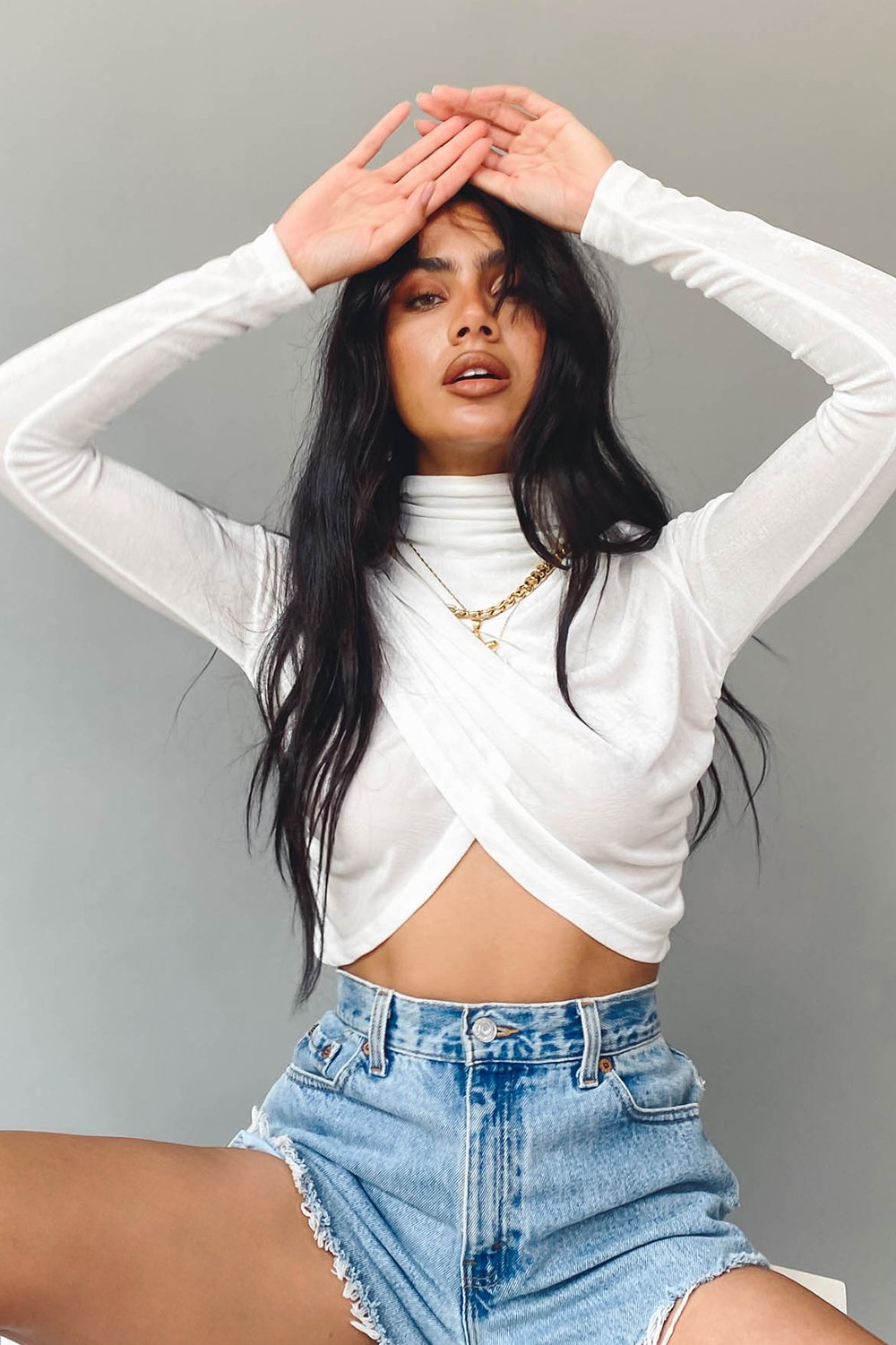 Vibing that cool, chic & effortless feel for cocktails with the girls... Our latest VG Exclusive Top features a cross over style front & is made from a soft, stretch fabric. We're wearing this number with our fave midi skirt & tie up mules! Also available in Black.