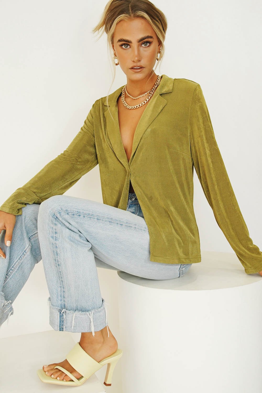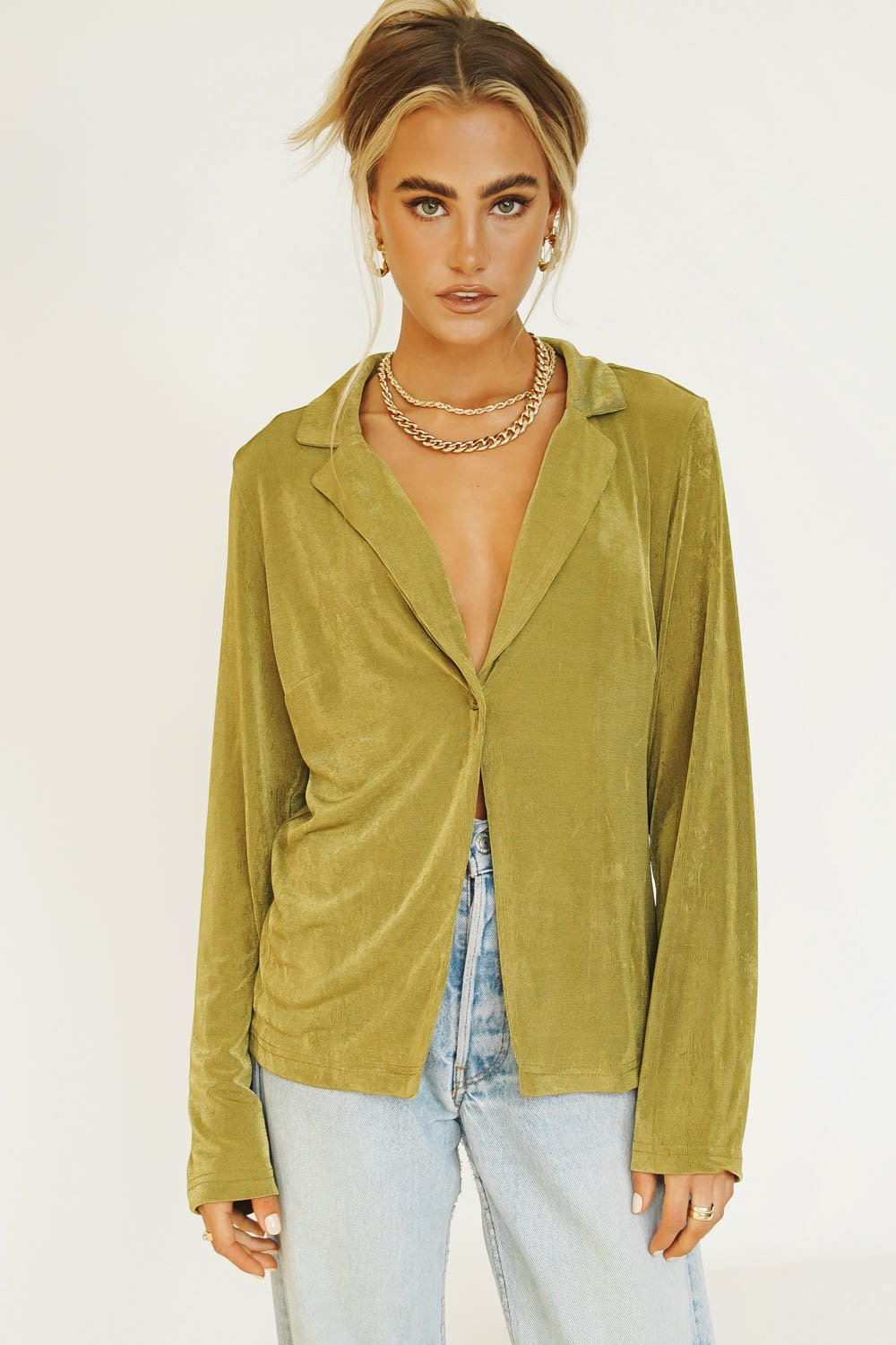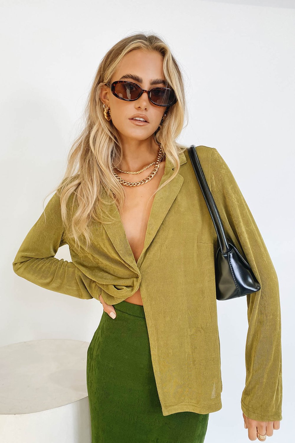 Vibing that effortlessly cool 90's street style... Our latest VG Exclusive Shirt features centre front buttons & is made from a soft, stretch fabric - we're wearing this number with our matching midi skirt & tie up mules! Also available in Wine & Cream.