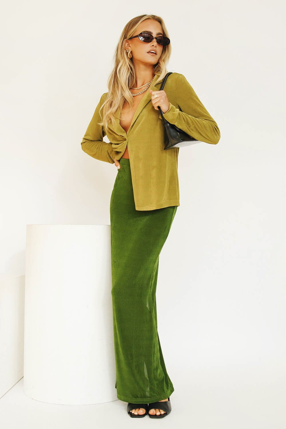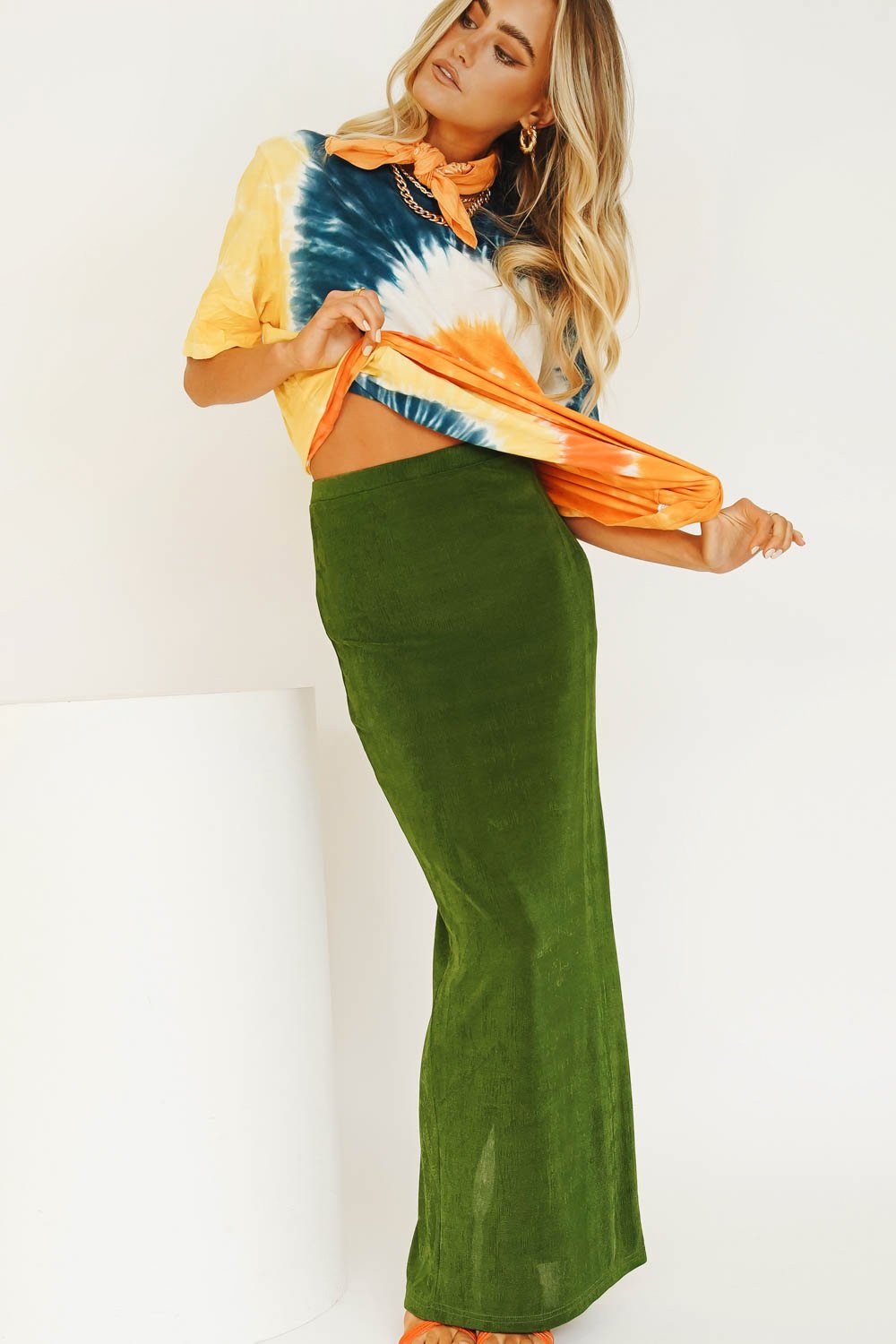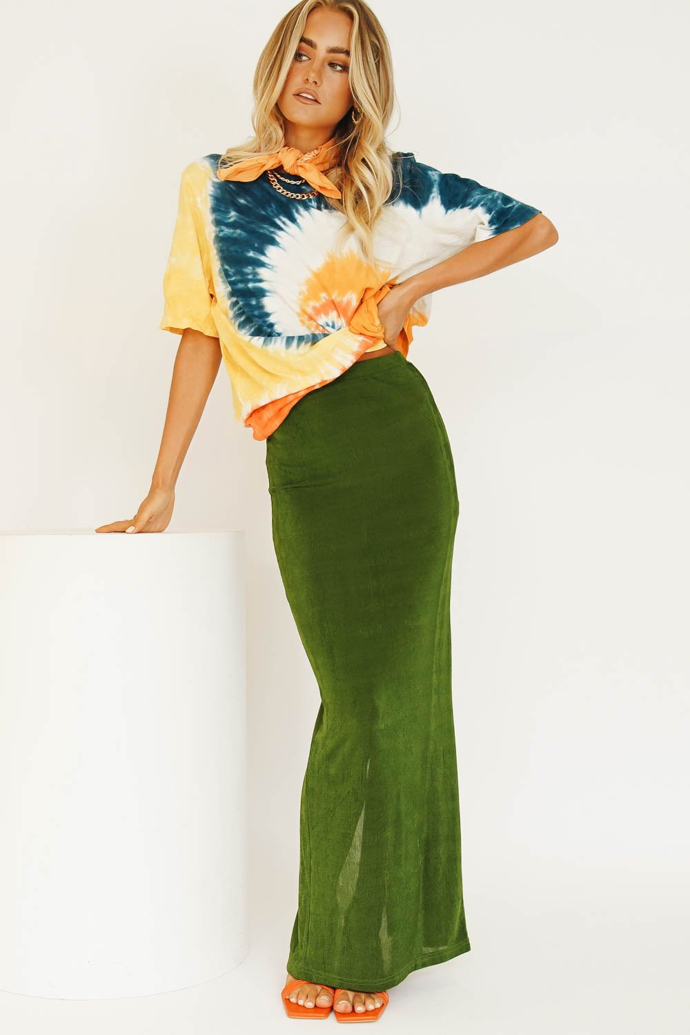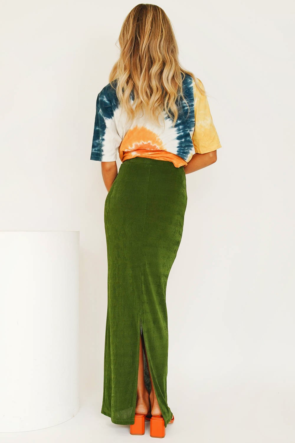 Vibing that effortlessly cool 90's street style... Our latest VG Exclusive Midi Skirt features an elastic waist, back split & is made from a soft, stretch fabric - we're wearing this number with our matching midi skirt & tie up mules! Also available in Tangerine.