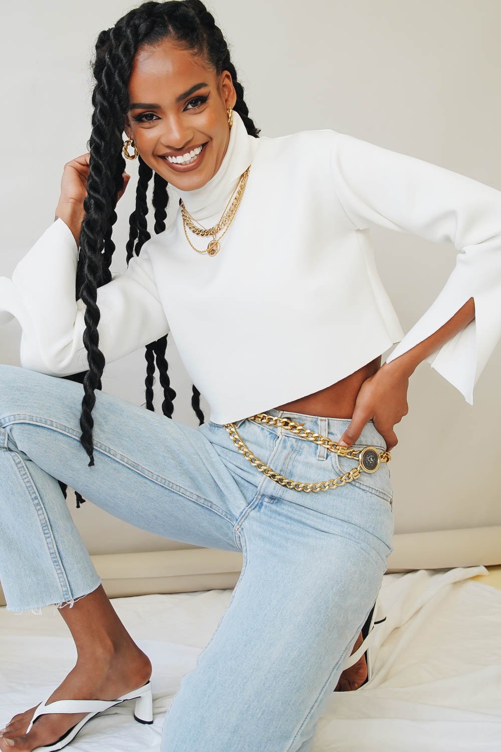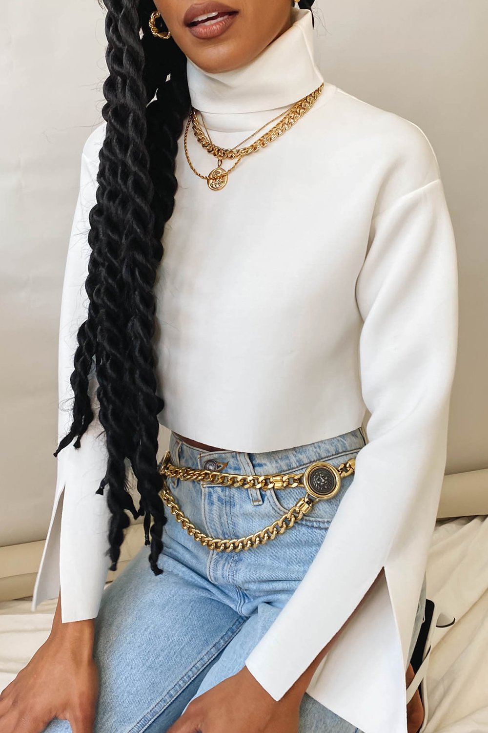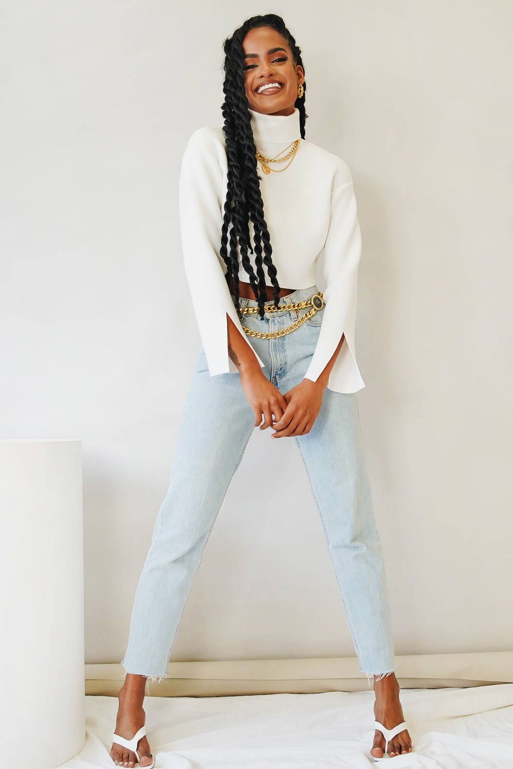 The 'not so basic' basic you're going to live in! This VG Exclusive Top is made from a soft stretch fabric, features a turtle neck & sleeve splits - it's the ultimate number to pair with your fave vintage jeans & strappy mules for an effortlessly chic look.