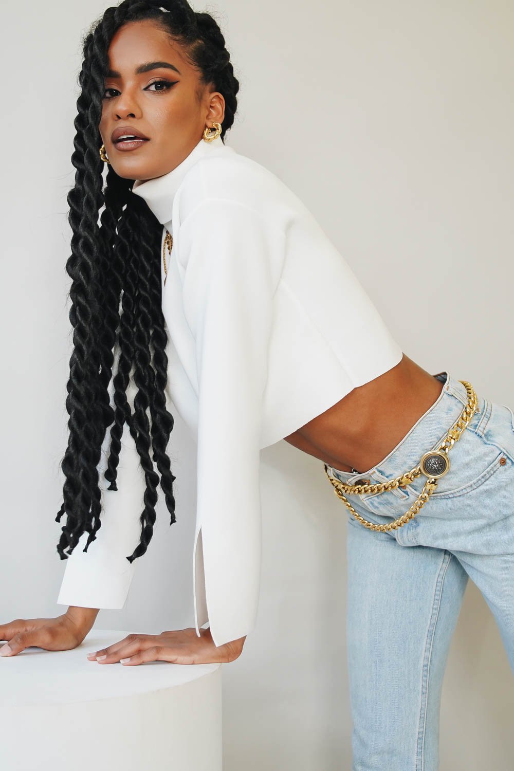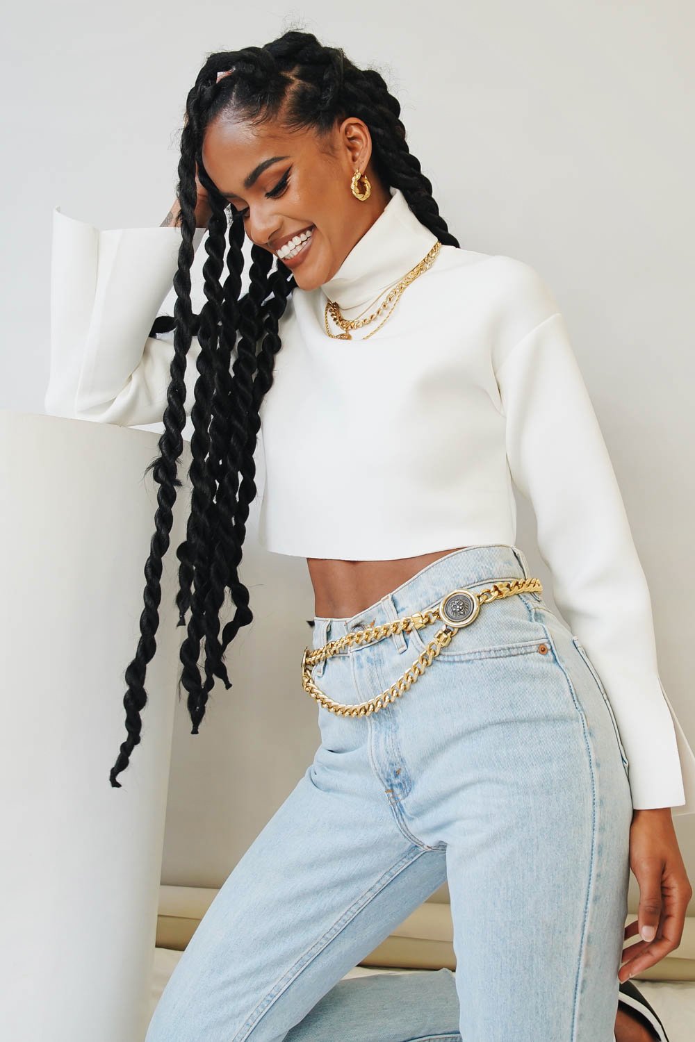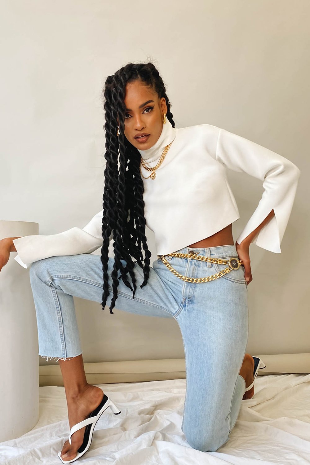 The 'not so basic' basic you're going to live in! This VG Exclusive Top is made from a soft stretch fabric, features a turtle neck & sleeve splits - it's the ultimate number to pair with your fave vintage jeans & strappy mules for an effortlessly chic look.