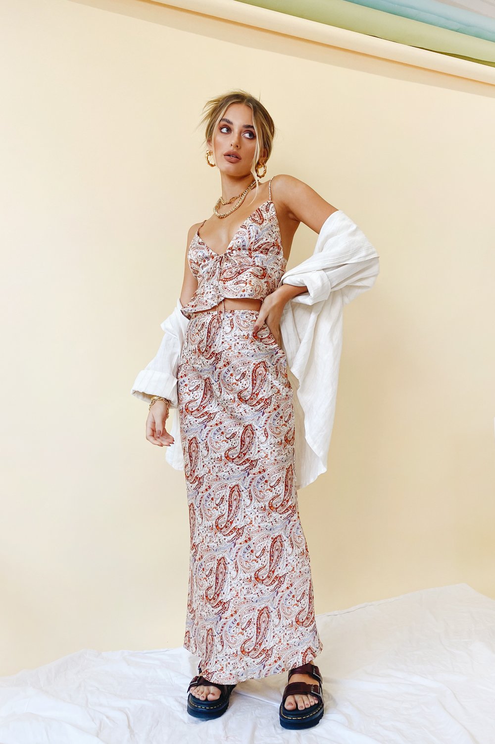 For that effortlessly chic street style vibe... Our latest VG Exclusive Top features a tie up bust, lined front & is made from a soft, silky fabric - we're wearing this number with our matching midi skirt & tie up mules!