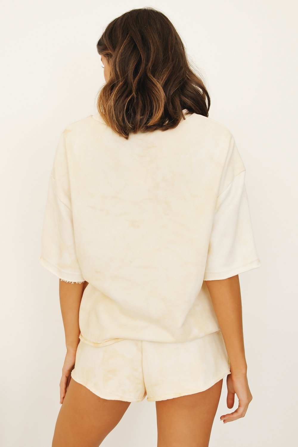 Dreamgirl Vibes Always... Think chill nights at home with your fave movie & a wine in hand. This soft stretch top is so chic worn with our matching tie dye shorts! We know what we'll be lounging in!