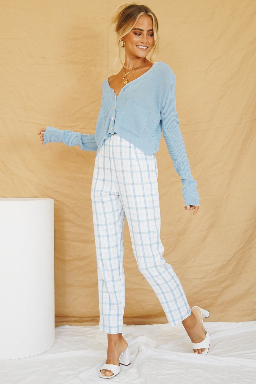 Always A Dreamgirl. These slim fit, curve hugging, check pants make getting dressed easy - Slip on with your fave crop or vintage tee & tie up mules for an effortless look.