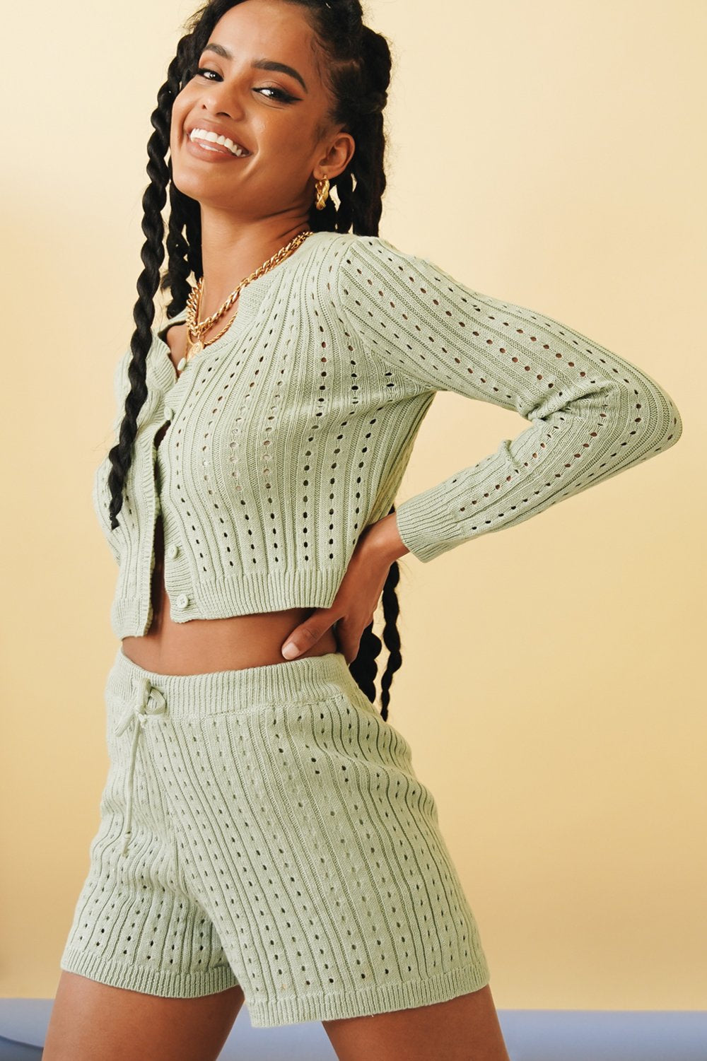Feeling effortless, cool & chic... Wake up late & throw on these knit shorts with our matching button front top & sneakers for brunch with the girls! We're Obsessed!