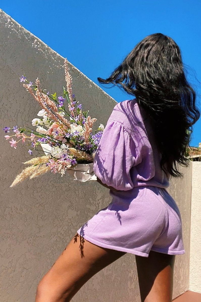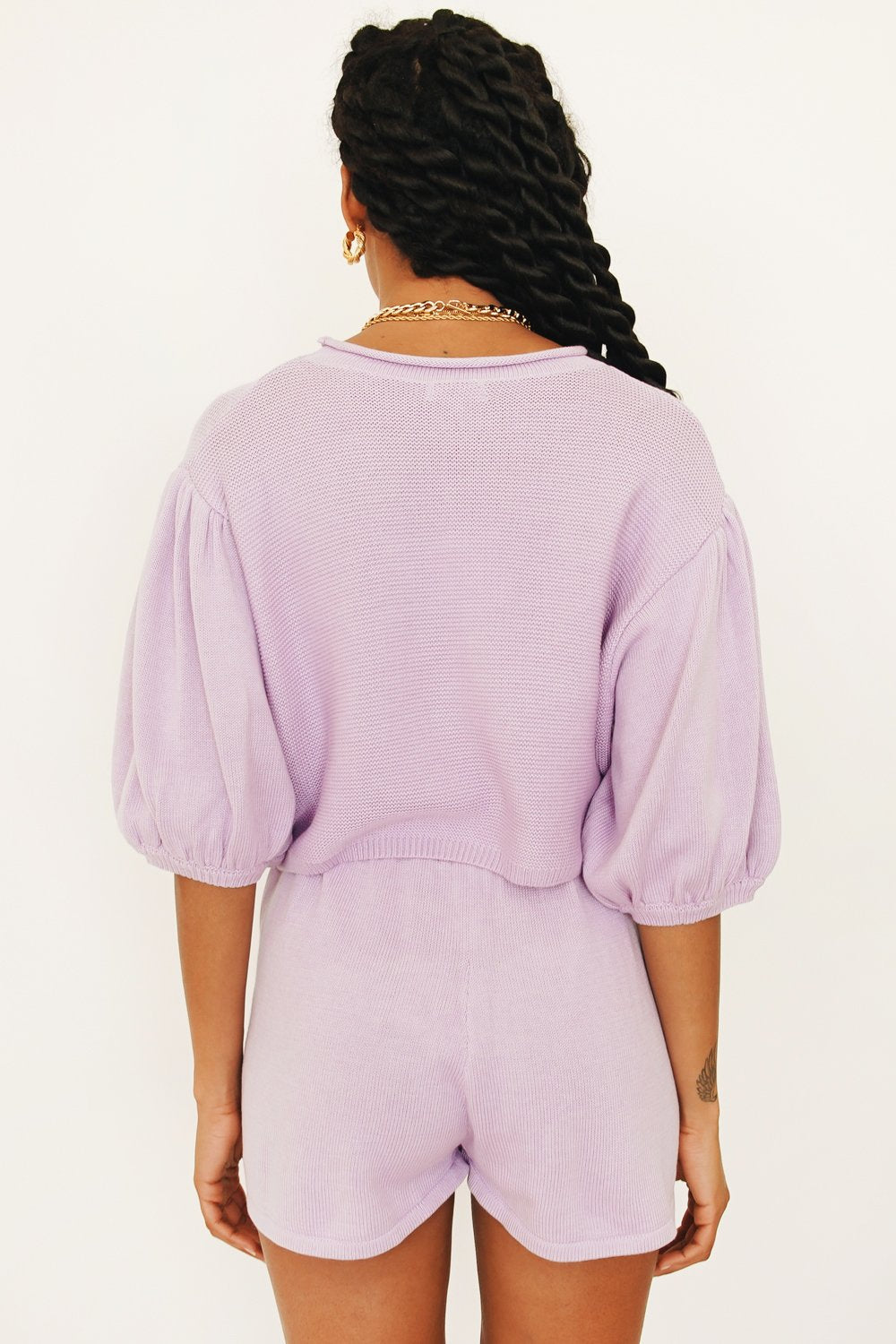 • Load image into Gallery viewer, Flowers & Wine Knit Shorts // Lilac