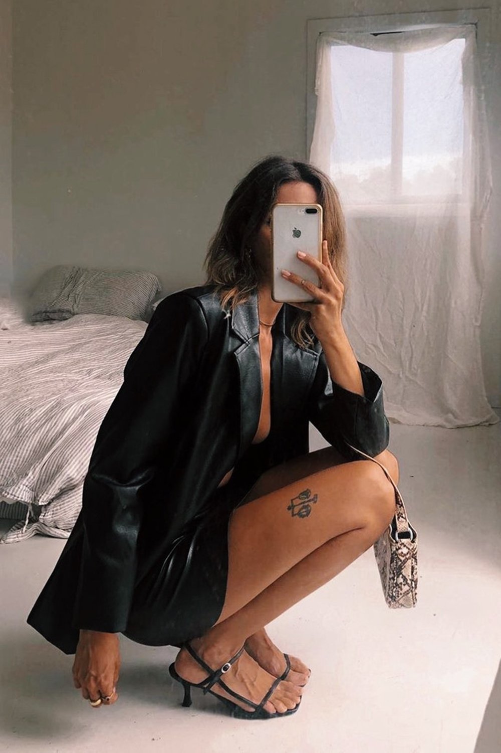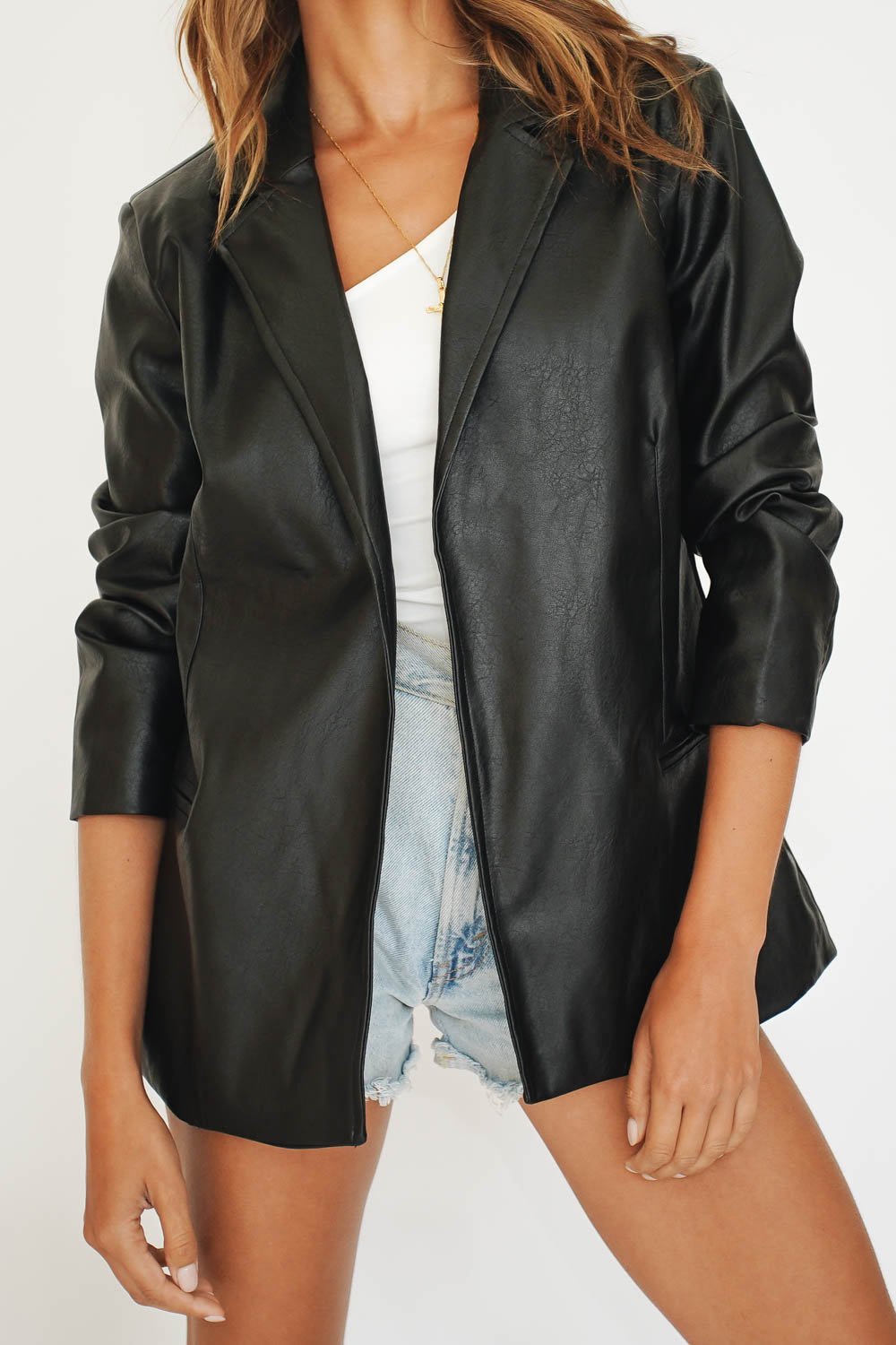 Girl On Film... For a total New York street style vibe, wear this VG Exclusive Jacket with your fave vintage denim, white crop & printed mules! Also available in White.
