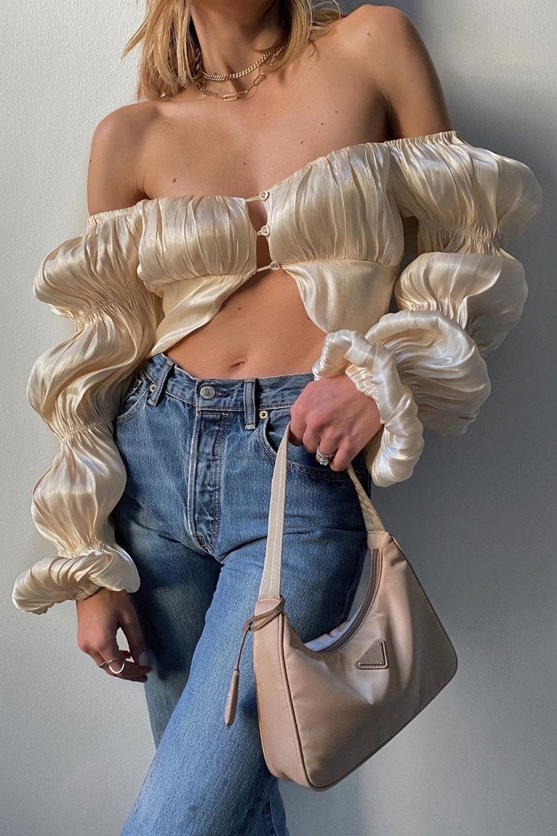 Parisian Chic. Style this VG Exclusive with vintage Levi's, strappy mules and gold hoops for a dreamgirl look. Also available in White.