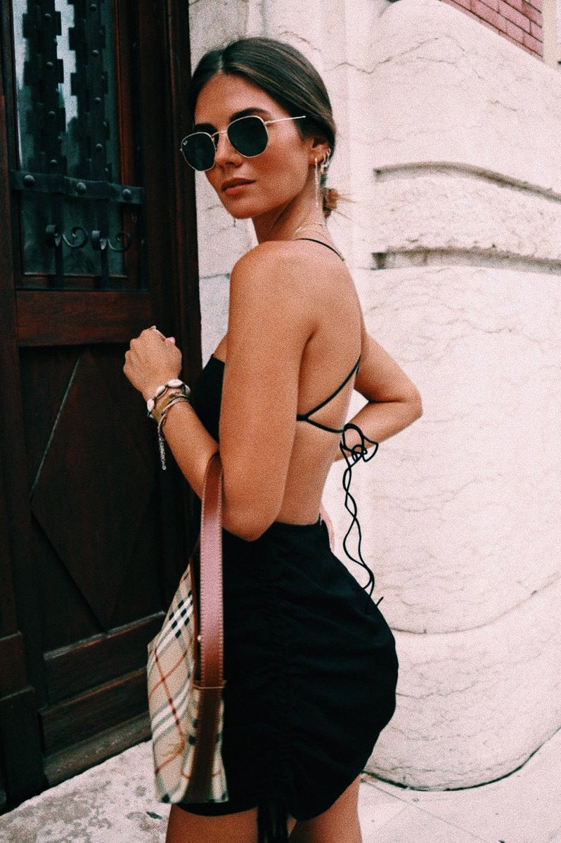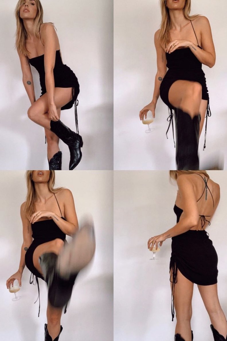 VG Inside Look Tie Back Ruched Mini Dress // Black