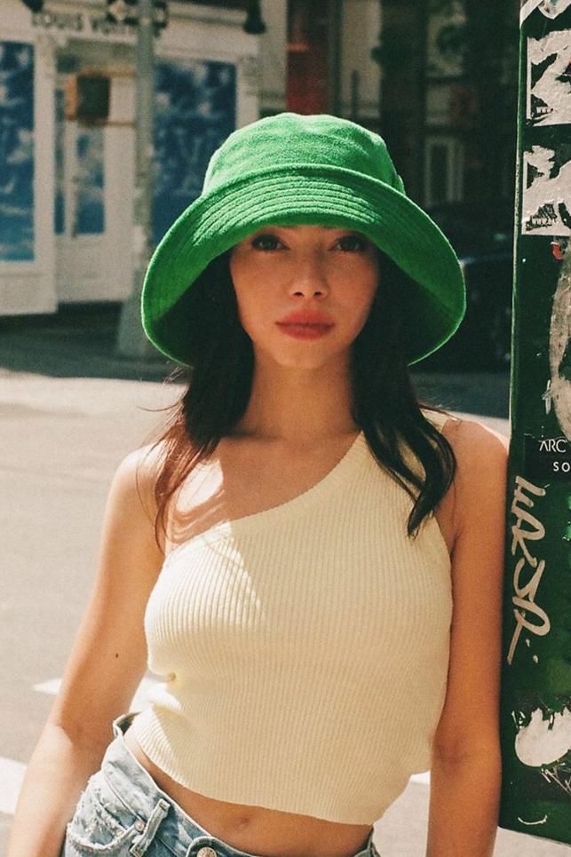Back To Basics. For an effortless cool weekend look, style this one-shoulder number with your fave vintage Levis', flip-flop mules and gold hoop earrings. Also available in Sky.