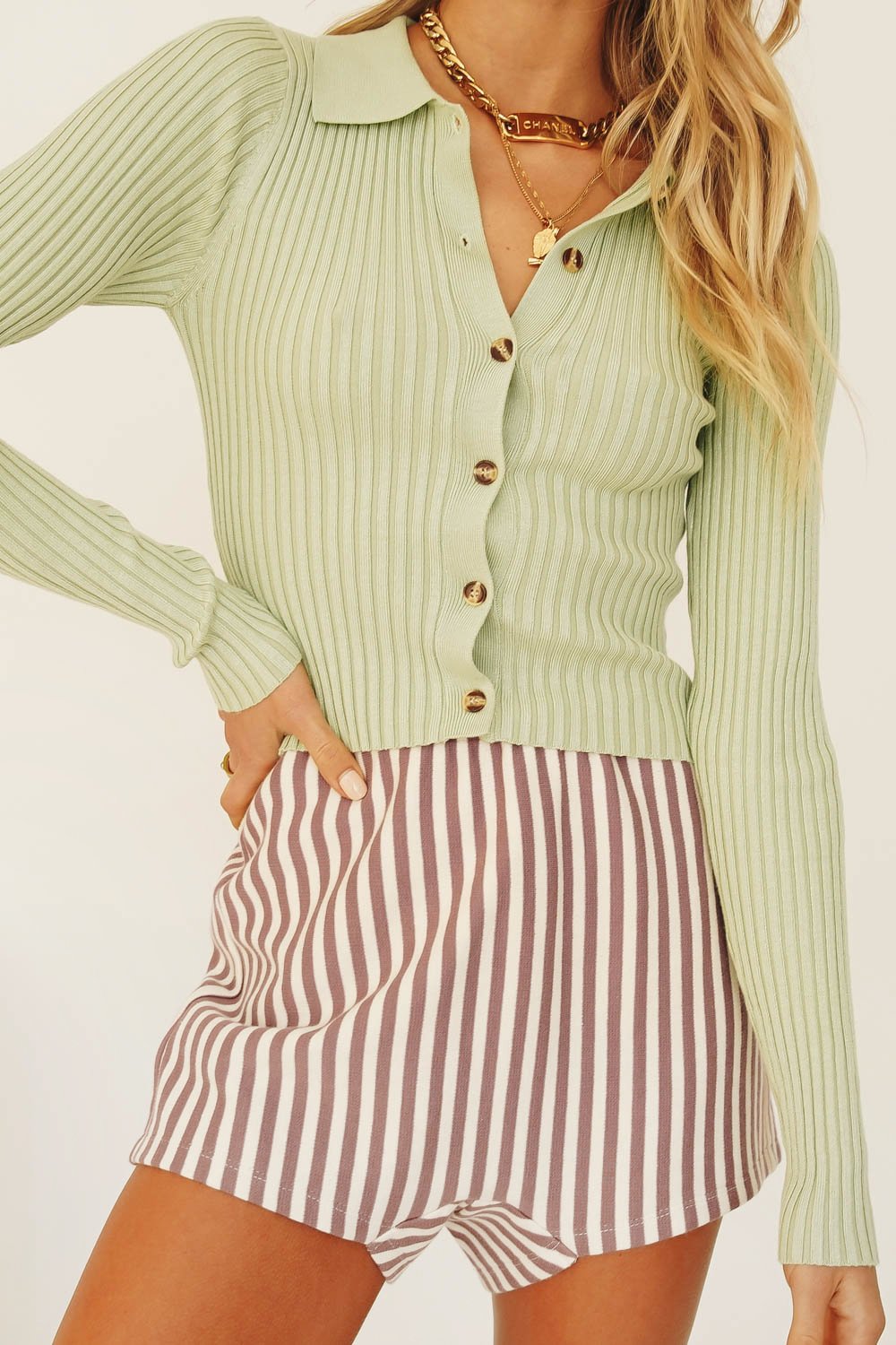Feeling Effortless & Cool. This ribbed knit top features centre front buttons & fits in all the right places. Pair with your fave vintage denim & tie up mules for a chic street style look.